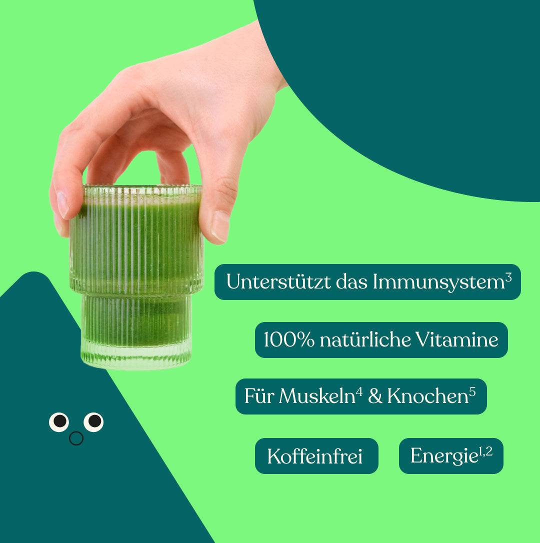 Unser Matcha Latte mit japanischem Bio-Matcha und dem Vitalpilz Lion's Mane sorgt für Momente voller Klarheit. Der Supreme Greens versorgt dich mit wichtigen Nährstoffen wie natürlichen Vitaminen und Mineralien.
