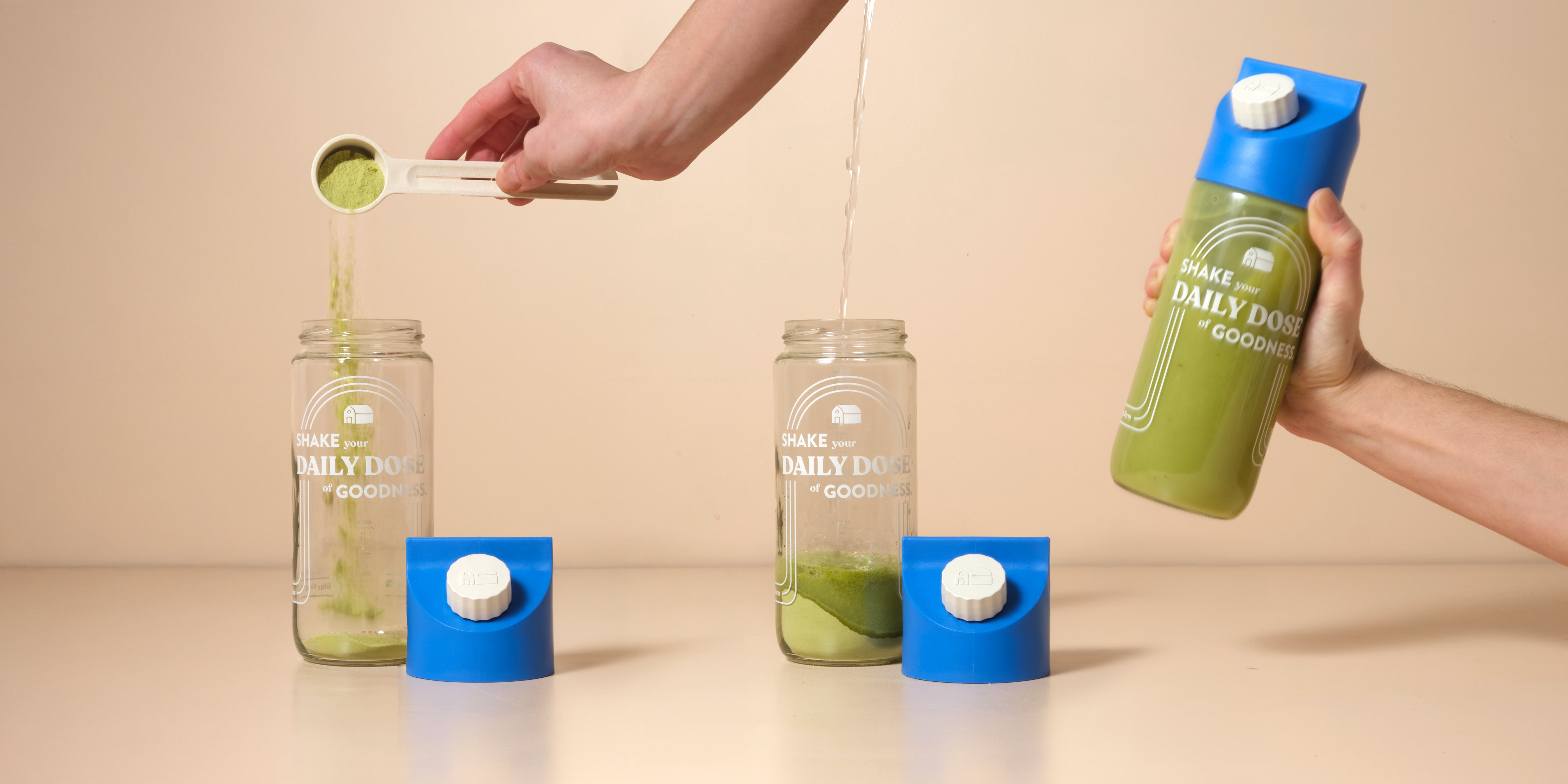 26 % Fruchtpulver und -extrakte (Apfel-*, Mango-*, Ananas-*, Bananen-*, Kokosnusswasser-* und Lucumapulver*, Acerola Extrakt*), 21,3 % Gemüsepulver und Algenmischung (Spinat-*, Karotten-*, Grünkohl-*, Spirulina-*, Chlorella-* und Rotalgenpulver Lithothamnium Calcareum*), Hafer* (fermentiert), Proteinmischung (Kürbiskernprotein*, Sonnenblumenprotein*), Inulin*, Adaptogen-mischung (Maca*, Moringa*, Chaga Extrakt*, Cordyceps Extrakt*), Hafer-Beta-Glucan*, Ingwerpulver*, Süßholzwurzelpulver*, Kurkuma*, Verdickungsmittel: Guarkernmehl*, Natriumcarbonat