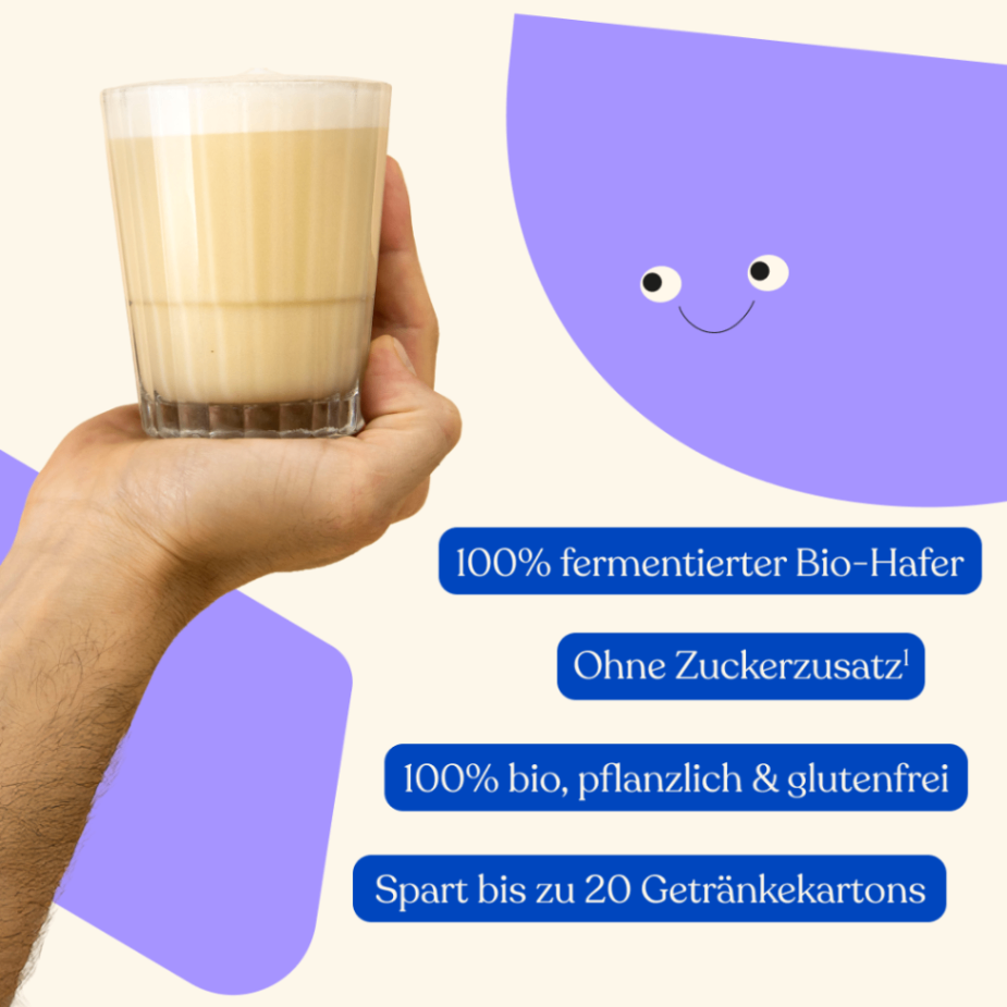 Wir setzen auf Genuss statt Verzicht: Entdecke cremige Haferdrinks mit verdammt leckerem Geschmack – ganz ohne Industriezucker, Aromen und Chemie.