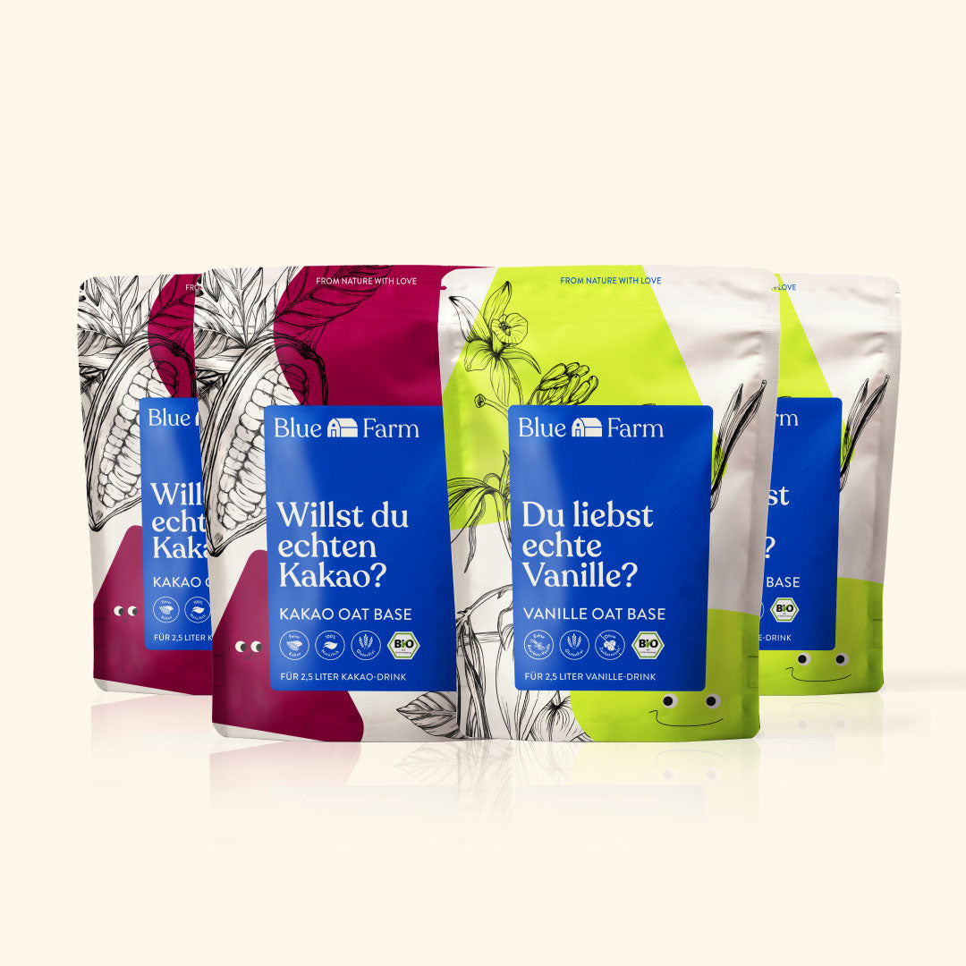 Bist du Team Kakao oder Vanille? Mit diesem Bundle musst du dich nicht entscheiden – freu dich auf cremig-natürliche Haferdrinks mit fairem Kakao und echter Bourbon Vanille. Perfekt für die ganze Familie.
