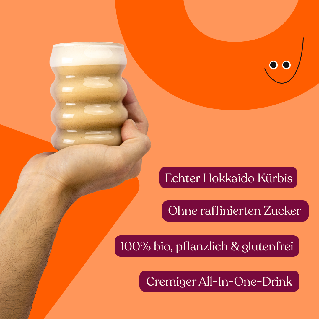 Erschreckend lecker: Unser zuckerarmer Pumpkin Spice Latte ist cremig, würzig und voll natürlicher Bio-Power – ganz ohne künstlichen Sirup.