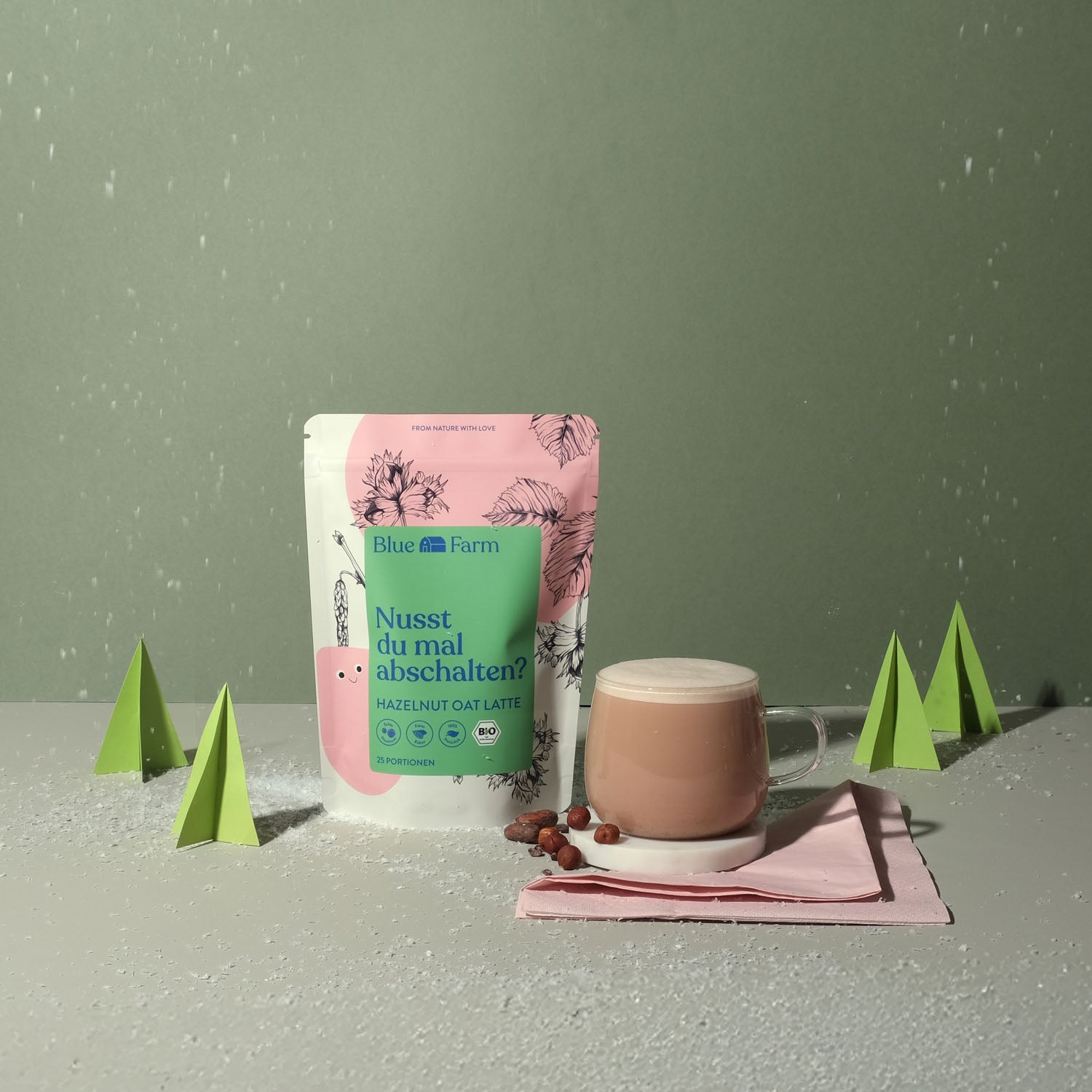 Hazelnut Oat Latte: Bio-Haferdrinkpulver mit Haselnussmehl und Kakao. Inhalt: 24 g. Pflanzlich. Laktose- und sojafrei. Ohne Zuckerzusatz* und künstliche Zusatzstoffe. Hergestellt in Deutschland.